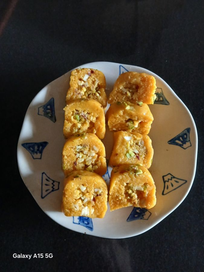 ५) चांदीचा   वर्ख  किंवा पिस्त्याचा चुरा दोन्हीपैकी काही ही वरून लावलं तर जास्त छान दिसतं.